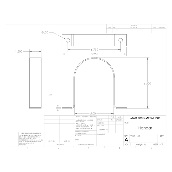 This hangar is useful wherever you need to cradle a 5 inch diameter object.